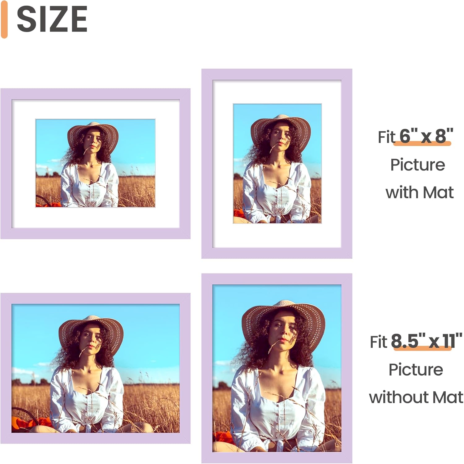 upsimples 8.5 By 11 Picture Frame, Display Pictures 6x8 with Mat or 8.5 x 11 Without, Wall Hanging Photo Frames, Purple, 1 Pack