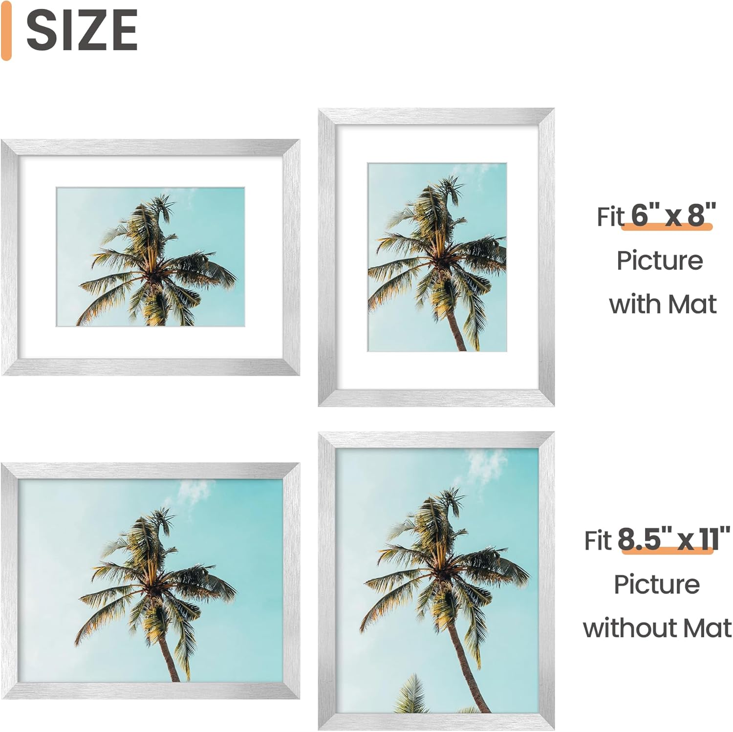 upsimples 8.5 By 11 Picture Frame, Display Pictures 6x8 with Mat or 8.5 x 11 Without, Wall Hanging Photo Frames, Silver, 1 Pack